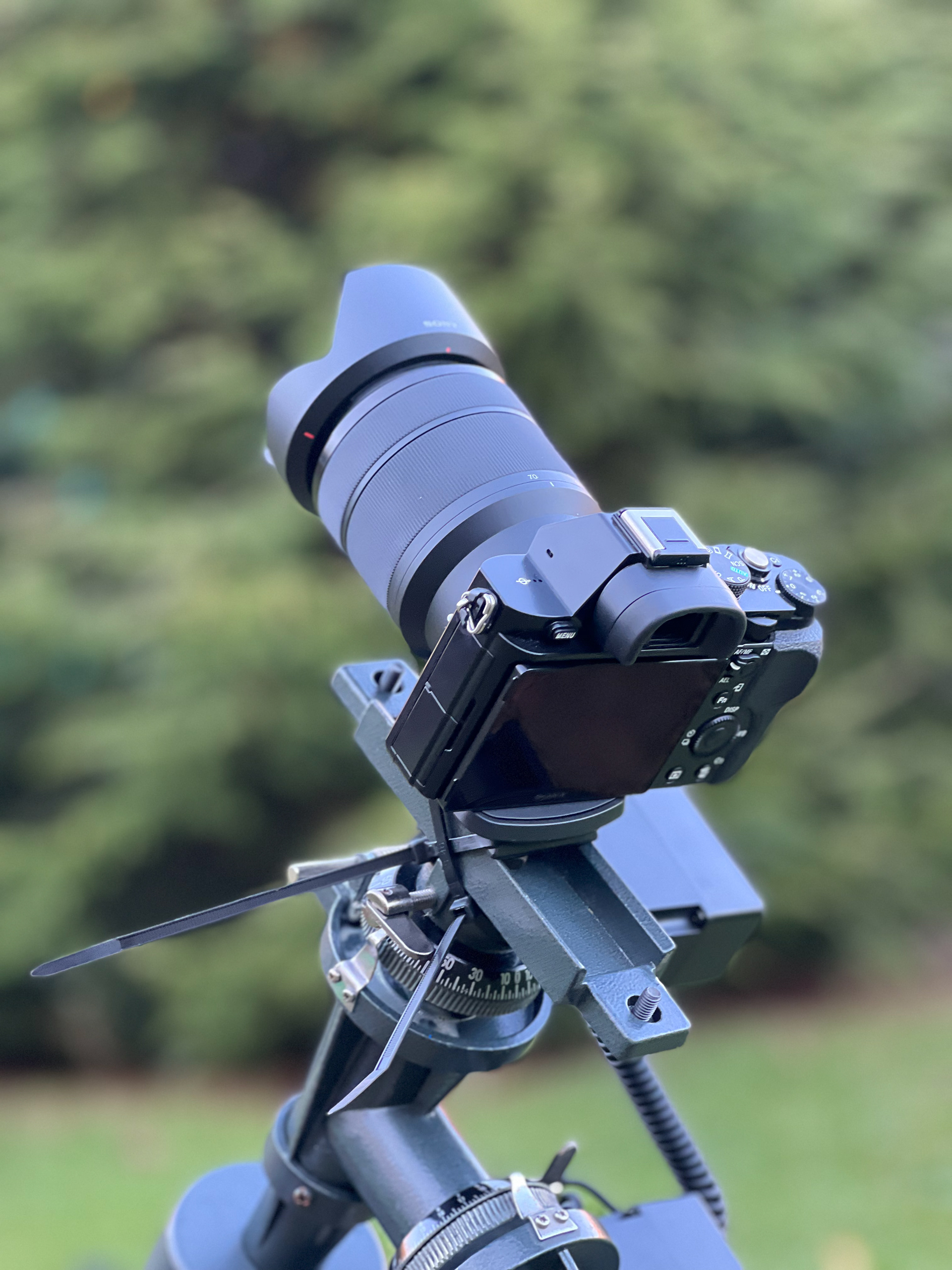 This was the first attempt at taking a wide field image of the night sky. I unmounted my 114mm reflector telescope and zip-tied the camera directly to the tracking mount... It works very well as the smaller focal lengths of the camera lens hides the inaccuracy of the tracking mount.